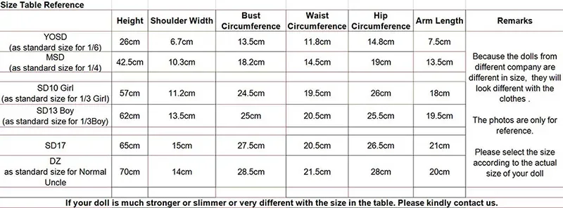 If there is no request, we will send our standard 1/6 size clothes to you.